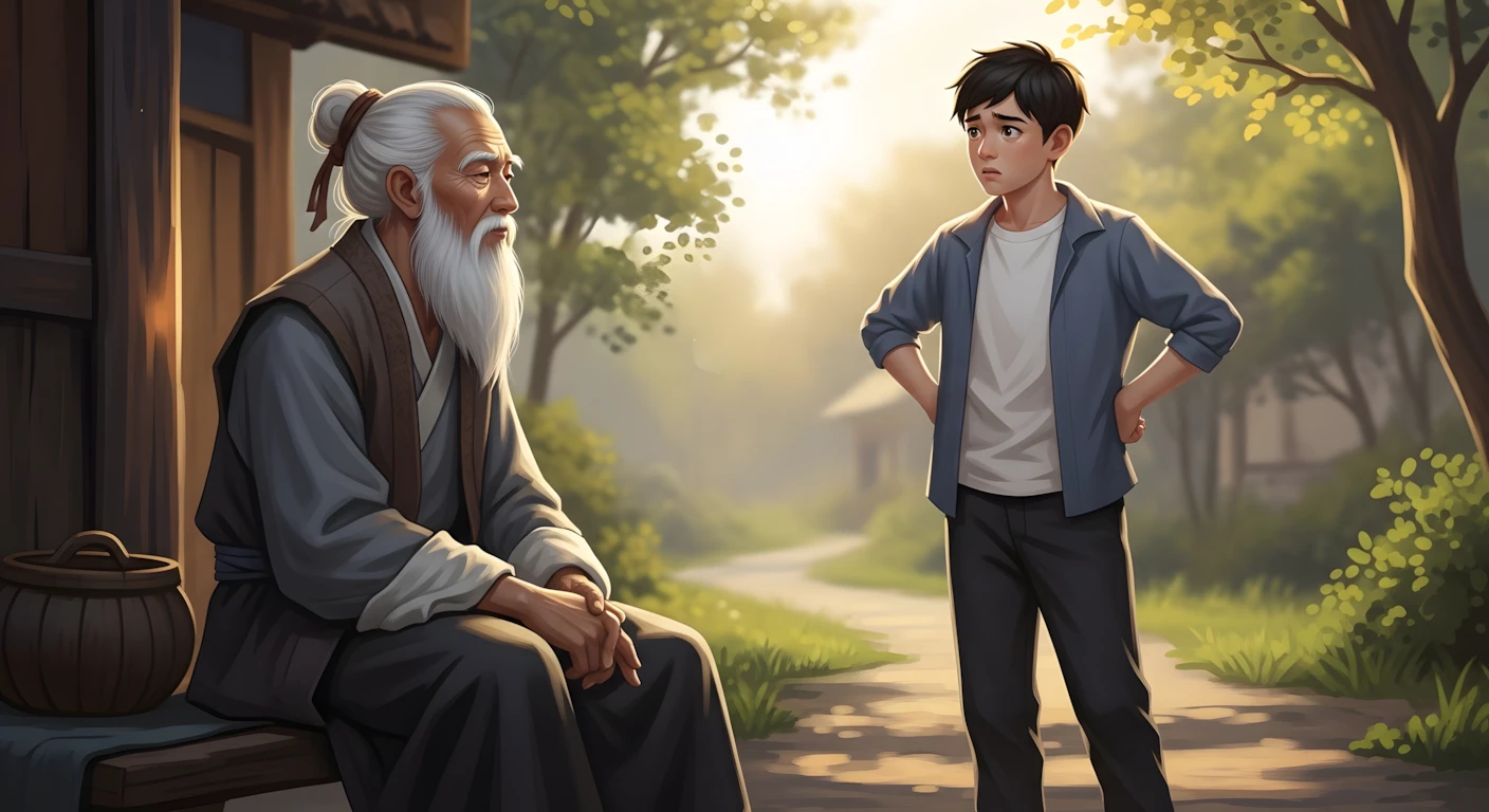 This thumbnail must instantly communicate wisdom, struggle, and transformation,